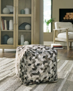 Fall into line with the geometric design of this pouf. Sporting faux hair on hide, this supportive shape in shades of gray and brown invigorates your decor with casually cool flair. Destined to become your favorite footrest, the pouf can also be topped with a tray for an instant end table.