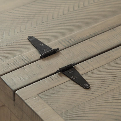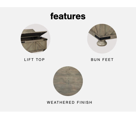 Double up on form and function with this square coffee table with storage. Its dual lid tabletop provides easy access to the roomy storage space. Crafted with solid pine wood treated to a weathered gray finish, this generously scaled coffee table is rustic farmhouse living at its best.