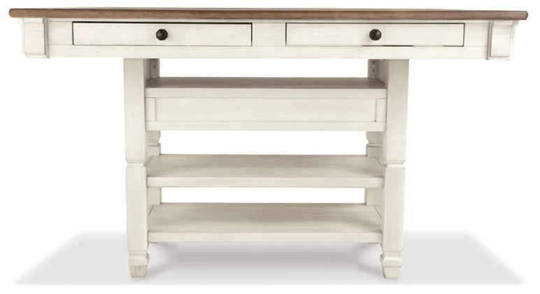 The beauty and practicality of the Bolanburg dining room counter table is something to savor. A two-tone textural finish gives this dining table with plank-effect top a double helping of charm. Four smooth-gliding drawers allow you to keep placemats, napkins and utensils right on hand. And if you love to entertain, you’re sure to toast this table’s built-in wine.