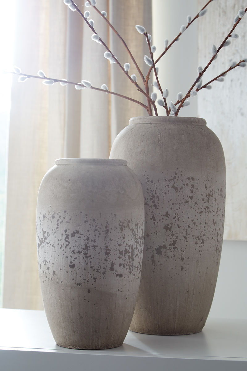 Is your home curated rather than simply decorated? Add another thoughtful piece into the mix with this 2-piece vase set. Brown and antique cream painted ceramic has a unique weatherworn finish. Add fresh florals for a vintage-inspired look.