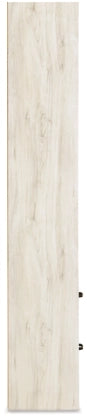 Express your farmhouse style with this TV pier. Its wispy white finish over replicated oak wood grain is a delightful change from the ordinary. Clean-lined styling gives the country chic aesthetic a fresh, contemporary appeal. The reversible door can open left or right with consumer assembly modification.