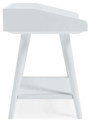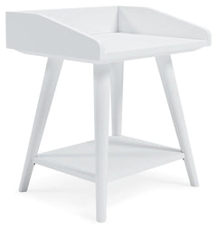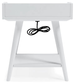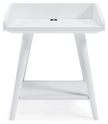 Display your decor with simple style on this accent table. Constructed of wood and engineered wood in a crisp, white finish, this table blends easily with your existing living room aesthetic or stands in as a kid's bedside table. A gallery rail top, undermount shelf and dual USB chargers keep your life (and your look) simply sensational.