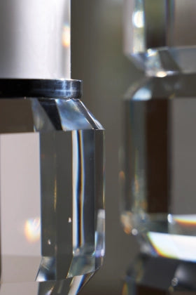 Clearly upscale and on-trend. Pairing crystal with silvertone metal accents, this candle holder set shines with a sophisticated sensibility. It's perfect for your contemporary design tastes.