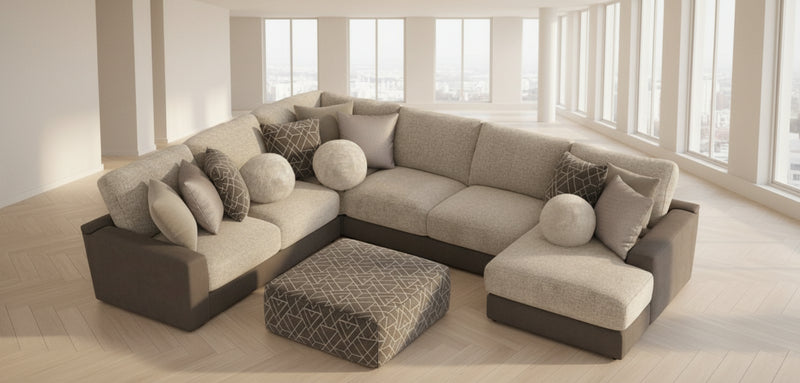 The Canyon Umber 4 Piece Sectional delivers sophisticated comfort with its expansive layout, ideal for spacious living rooms and entertainment spaces. This versatile sectional features a rich umber upholstery that complements contemporary and transitional interiors. The four-piece configuration offers flexible arrangement options, allowing you to customize the layout to suit your space. Built with durable construction and generous seating capacity, this sectional accommodates family gatherings and social occasions with ease. The neutral tone pairs effortlessly with existing décor while providing a refined focal point for your room.