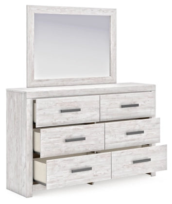 Charmingly designed, this dresser with mirror embraces the aesthetics of countryside living and repurposes them for modern settings. Its whitewash paint, replicating the wear and tear of time, appeals to your love of vintage character. A fresh take on function, the smooth-gliding drawers are a chic storage spot for your clothes and linens.