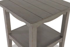 Put your love of European farmhouse styling on display. Finished with an antiqued gray chipped paint effect for an authentic vintage look, this end table is loaded with character. An open display shelf allows for storage and easy access to books, beverages and more.
