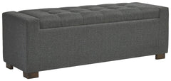 Whether gracing a front entry or living room, or placed at the foot of the bed, this upholstered storage bench is loaded with flair. Tufted cushioned seat with hinge reveals an ample storage compartment for this, that and the other. Gorgeous gray fabric is the epitome of neutral sophistication.