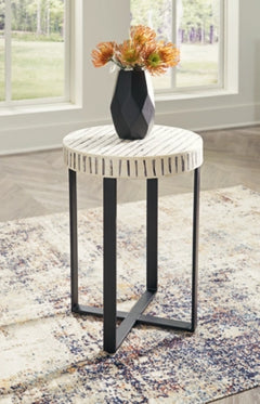 Understatedly cool in its construction, this accent table adds a subtle sense of edginess to your modern decor. Its bone inlay in cream and black creates visual intrigue on the top, balanced out by the sleekly styled black base.