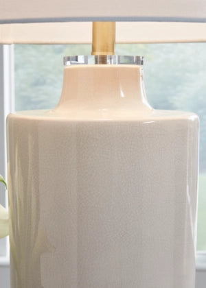 Serve up a simply stunning take on traditional style. The crackled glazed ceramic base of this table lamp is smooth to the touch yet full of visual texture. No need to sacrifice beauty for functionality here—it captivates while also providing light for reading or relaxation time.