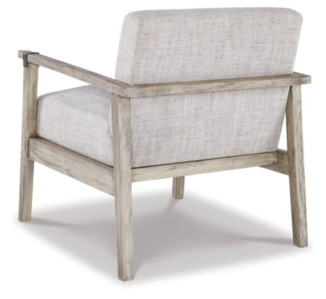 Keep your seating casually cool with this accent chair. The clean-lined design sports a gray finish for a modern appeal, while light neutral upholstery in a herringbone pattern creates textural interest. Antiqued pewter-tone accents add a touch of urban flair, rounding out this relaxed take on contemporary style.