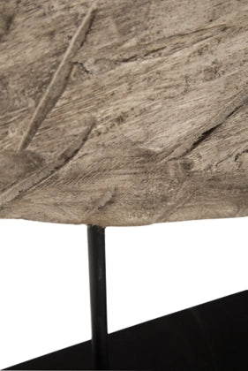 Elegantly adorn your bookshelf, mantel or dining table with this sculpture. Wood in an antiqued white finish is brimming with natural beauty and adds warmth to your space. A sleekly styled black metal base grounds the piece.