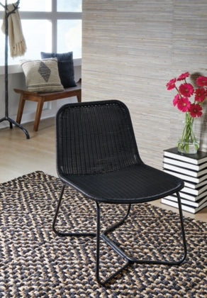Keep your casually cool style consistent from indoors to out with this accent chair. With a black wicker seat and back, it works well both in a small corner seating area or on the patio, suiting a variety of aesthetics. Whether it’s used for lounging poolside or kicking back with a book in the AC, this accent chair has a universal appeal that’s bound to impress.