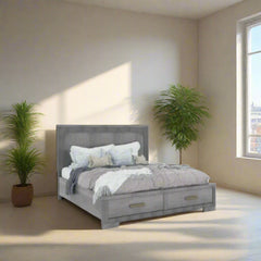 The Downtown King Bed is a luxurious and spacious option for your bedroom. With its elegant design and comfortable size, this bed allows you to fully relax and get a good night's sleep. Made with high-quality materials, it provides both style and durability. Perfect for anyone seeking a sophisticated and comfortable sleeping experience.