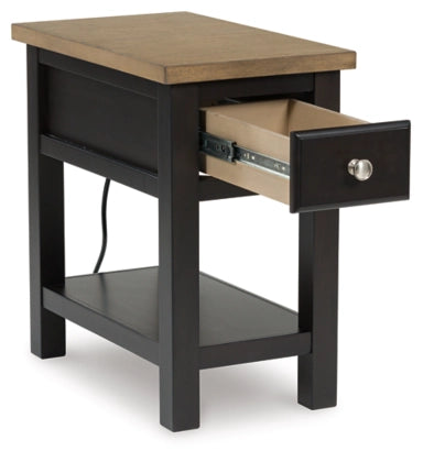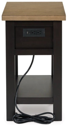 When you’re styling your living room, convenience is key. With this chairside end table, casual flair meets can’t-miss function. Tired of trekking to find a charger when your device is dead? This table's built-in outlets and USB ports allow you to stay at ease in your favorite seat. The fashionably functional piece pairs a dark chocolate brown with a light wood tone, complementing a variety of color palettes.