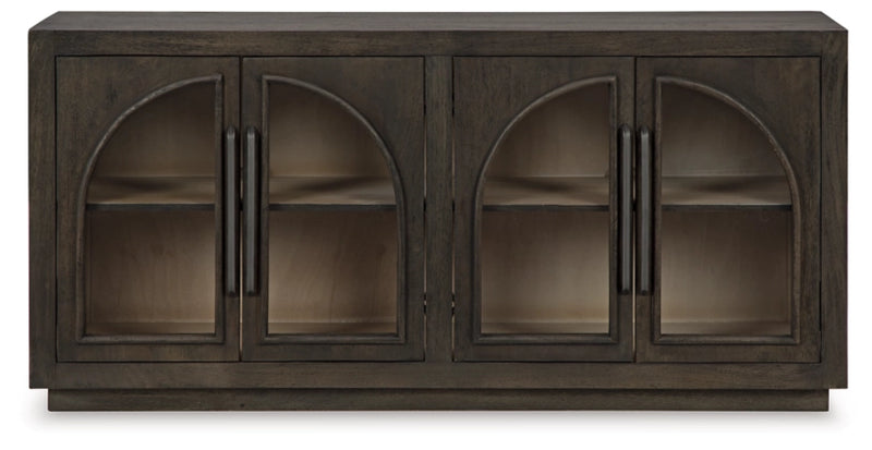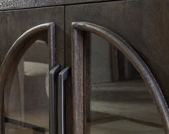 Bring a timeless look to your home or office with this accent cabinet. Traditional lines and a distinctive two-tone finish lend seriously classic vibes to this piece. Arched glass door fronts and two shelves make it easy to display and store in stunning style.