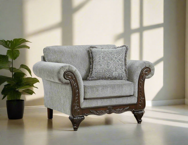 The Emma Slate Chair is a comfortable and stylish addition to any home. It features a durable solid wood frame, a supple gray linen upholstery, and a comfortable cushion that supports the entire body. Its contemporary design fits in perfectly with most home decors.