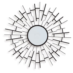 This accent mirror makes a bold statement in contemporary and industrial spaces. Framed with sunburst-style metal fretwork and finished in a luxe black, it's a fabulous blend of form and function.