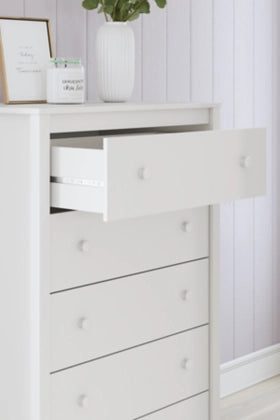 Thanks to its playful scalloped design, this chest of drawers is the perfect fit for cottage or coastal farmhouse interiors. The matte white finish serves as the perfect backdrop to showcase your personal taste and creativity. And its spacious drawers let you say goodbye to clutter and hello to well-organized whimsy.