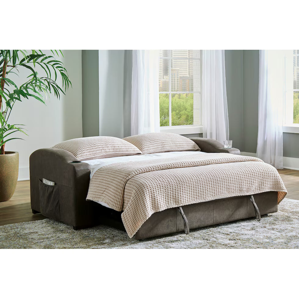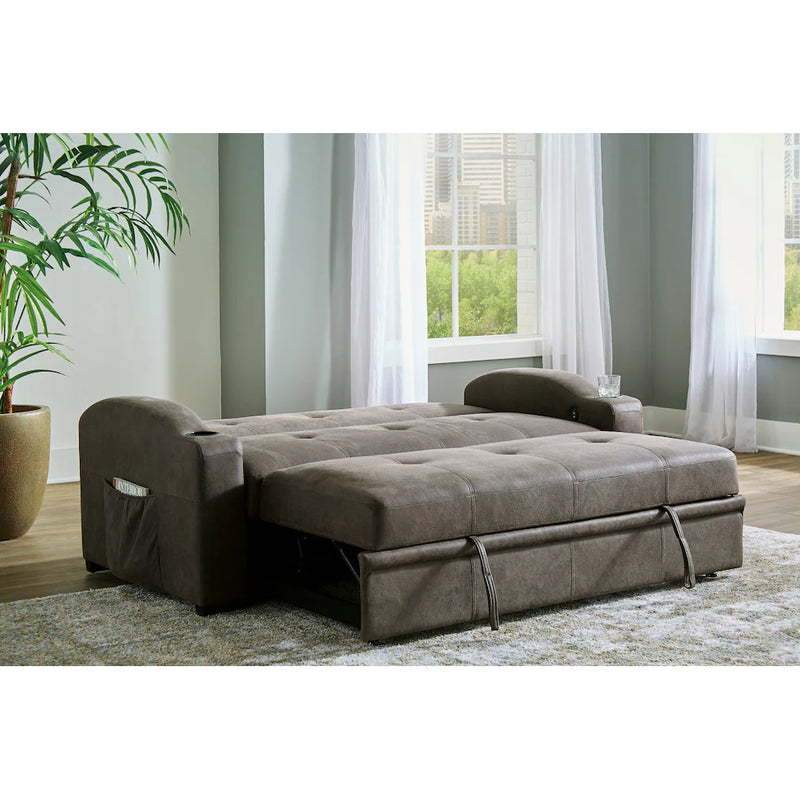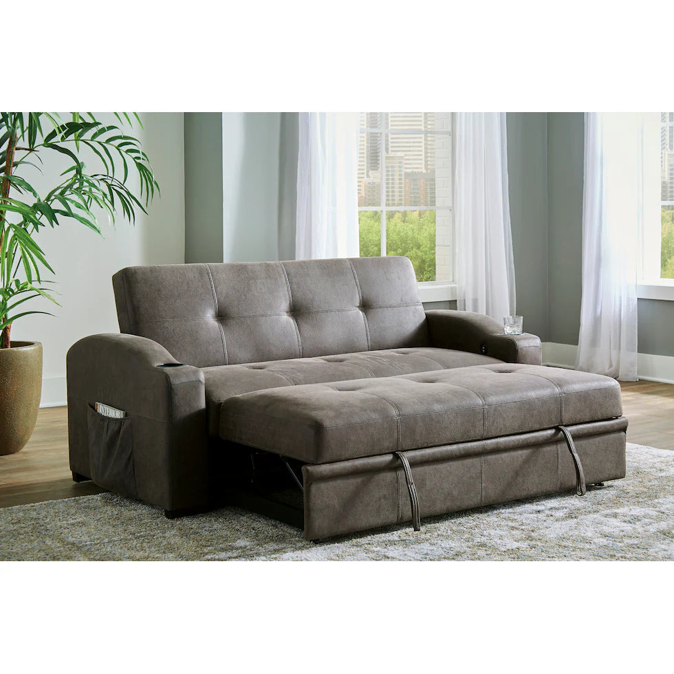 The Hermosa Pop-Up Sleeper is a small-space essential with big-time versatility. Wrapped in gunmetal gray faux leather, it effortlessly transitions from stylish seating to a roomy sleep space.