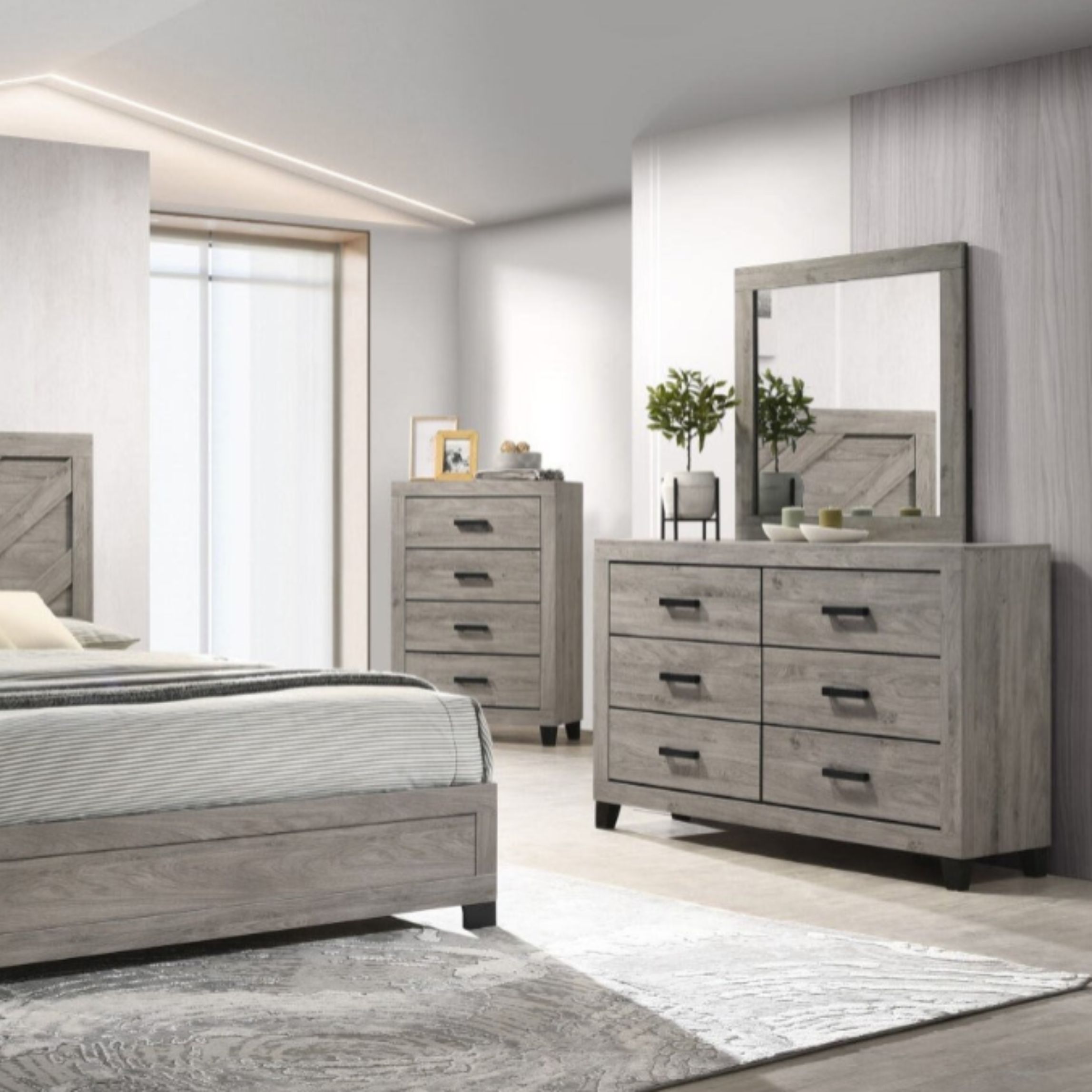The Jeffery Dresser and Mirror is a stylish and functional addition to any bedroom. With ample storage space and a sleek mirror, this dresser offers both organization and convenience. Made with high-quality materials and expert craftsmanship, it is sure to elevate any room. Upgrade your space with the Jeffery Dresser and Mirror.