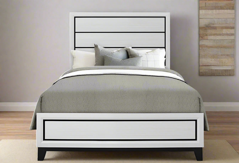Unleash the potential of your bedroom with the Kate White Full Bed. Made with high-quality materials, this bed brings both style and comfort to your space. With its sleek, clean design, it adds a touch of elegance to any room while providing a comfortable and supportive sleep experience. Upgrade your bedroom today with the Kate White Full Bed.