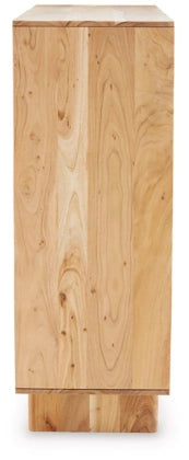 This accent cabinet offers clean, functional style for your entryway or living room. With fluted door fronts and ample shelves, it adds visual intrigue and storage options. A masterful blend of simplicity and modernity, this cabinet seamlessly fits into every environment.