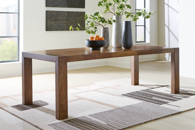 Experience worry-free living with this dining table. Designed to effortlessly blend casual and refined aesthetics, the rich brown butcher block veneer exudes a modern, relaxed vibe you'll love. Styled to comfortably seat eight, this piece makes room for one and all.
