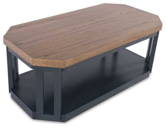 This accent table set combines casual contemporary design with modern appeal. With thick-bodied wood-tone tabletops and on-trend slate blue frames and shelves, these tables are a smart choice on so many levels. And casters on the coffee table's legs make it easily mobile for quick room transformations. This three-in-one pack is more than just nice furniture anchoring your sofa.