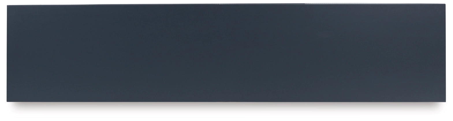 Elevate your aesthetic with the chic design of this accent cabinet. Sleek goldtone legs and striking doors with a geometric pattern infuse contemporary flair wherever you place this piece. Add a dark blue finish, and you've got a stunning showstopper. Providing function to form, the cabinet's push magnetic doors reveal two shelves and openings for electronics.