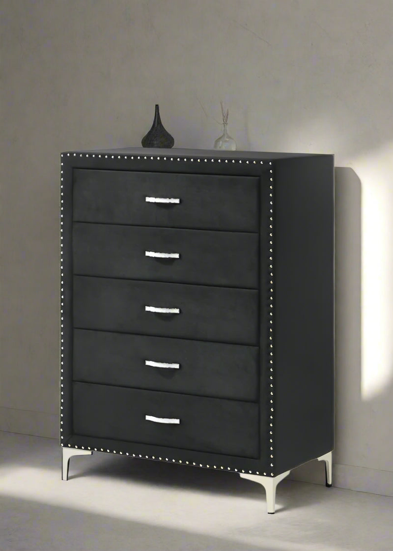 The Lucinda Black Chest offers a stylish and functional storage solution for your bedroom. Crafted with quality materials, it features a spacious interior and sleek design, perfect for keeping your clothing and belongings organized. Upgrade your bedroom with this elegant and practical piece.