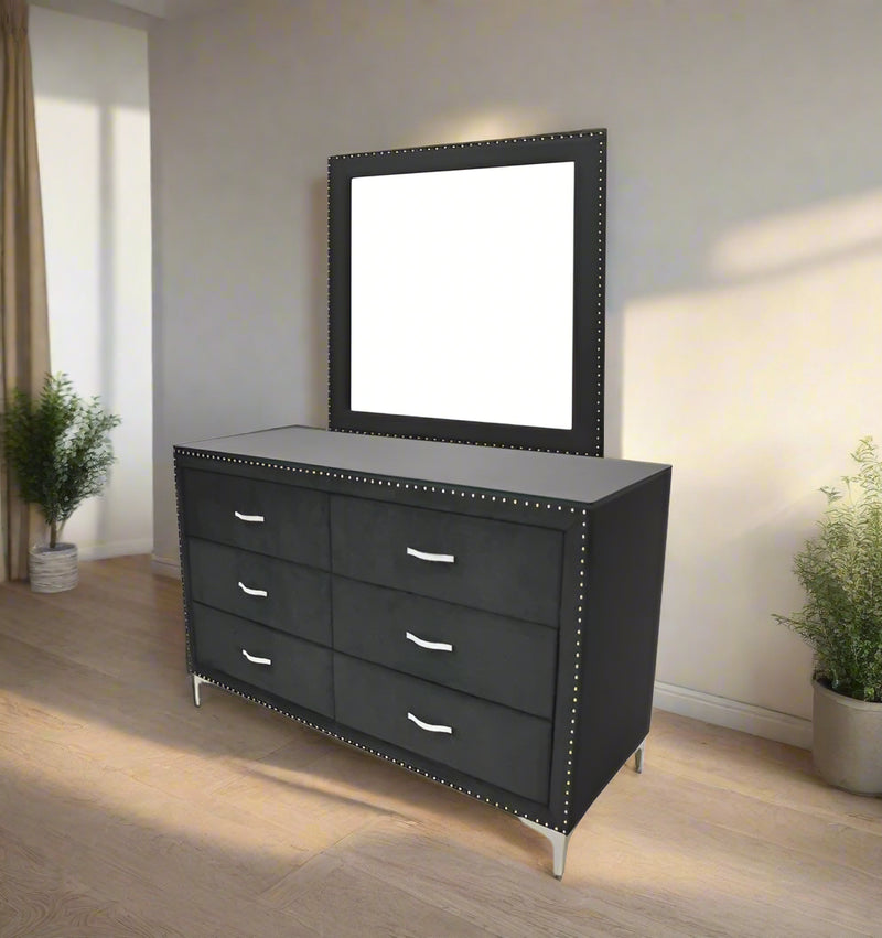 Update your bedroom with the sophisticated and elegant Lucinda Black Dresser and Mirror. Crafted with expert attention to detail, this set boasts a sleek black finish and stylish mirror accents. With ample storage space and a chic design, this dresser and mirror will elevate your space while providing functionality.
