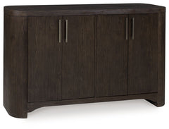 Refined simplicity meets everyday comfort in this dining server. Its dark espresso finish adapts effortlessly to your personal style. Spacious cabinets, shelving and drawers comfortably store dining essentials, with a handy utensil tray in one of the drawers keeping silverware organized. Elevated yet inviting, its combination of gentle curves and clean lines helps you create a serene dining space.