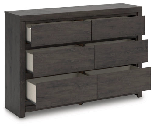 Find serene simplicity in the clean lines and dark neutral tones of this dresser. It’s a sincere approach to modern elegance, giving you high style at a great value. A sleek hardware-less design creates a fuss-free look. Short on storage? This dresser’s smooth-gliding drawers keep clothes and clutter neatly tucked away.