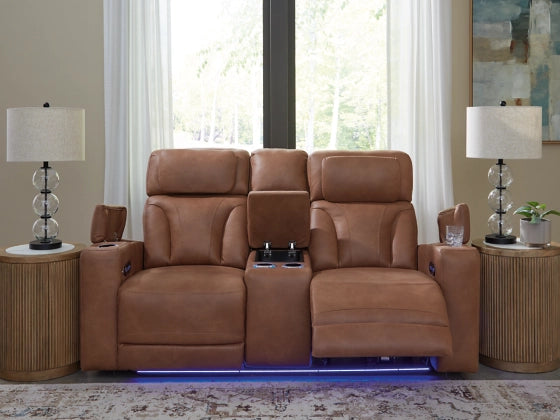 Point Clear - Caramel - Power Reclining Loveseat With Console / Adj Headrest