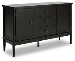 Farmhouse and contemporary design, balanced beautifully. This dining server merges a clean-lined silhouette with a laid-back aesthetic for an updated sensibility. The glassware rack is fixed at the top of the cabinet interior, while the reversible wine rack can be flipped over and voila used as a standard shelf. A modern French black finish with deep warm brown undertones perfectly punctuates this casually inviting server. Now, what's for dinner?