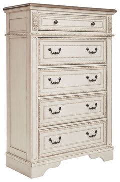 Realyn - Five Drawer Chest - White / Brown / Beige