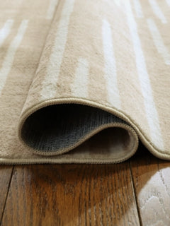 Dress up any floor with the natural hue and abstract look of this rug. It welcomes visitors with warmth and comfort underfoot. The neutral palette brings a marvelously modern vibe to your decor. This area rug is machine washable for fuss-free cleaning, making it an ideal addition to busy households with pets and kids.