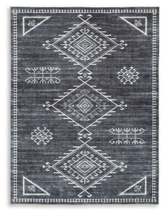 Drawing on Southwestern weaving motifs, this area rug features a repeating pattern with geometric borders. Its distressed design, in a palette of white, gray and black, provides a distinctive look and feel for interiors ranging from modern contemporary to boho chic. A low pile height makes it ideal for high-traffic spaces.