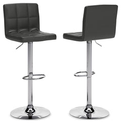 This upholstered swivel bar stool is ultra-contemporary style with a twist. Chrome-tone metal base is a sleek complement to the tailored cushioned seat with faux leather upholstery and squared tufting.