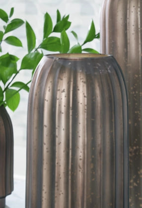 If contemporary style speaks to your design sensibilities, this vase will captivate you with its on-point aesthetics. A stunning mercury glass finish and fluted design make it a visual delight. This exquisite piece effortlessly stands out on its own, or you can accentuate its beauty by filling it with your favorite flowers.
