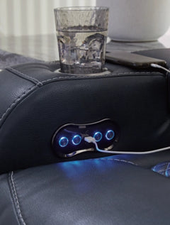 This power reclining loveseat goes beyond basic comfort. It upgrades the everyday, turning your living room into an entertainment hub. Don’t want to leave your seat? Keep essentials in reach with cup holders and storage arms. You can create an even cooler vibe for family movie nights and friendly gaming matches with LED lights. Immerse yourself further with built-in wireless audio connectivity. And your sleek style isn’t compromised—its diamond stitching and streamlined arms recall the aesthetics of luxury automobiles.