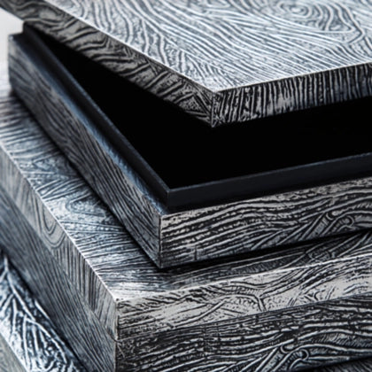 Ideal for a dresser, chest or accent table, this set of three wood and metal boxes is a contemporary choice for the forward-thinking modernist.