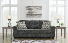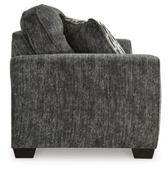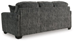 This sofa speaks to those drawn to fresh, contemporary style with richly neutral appeal. Subtle and sophisticated, the plush upholstery and dark tri-block legs are a natural complement for so many color schemes. Two accent pillows make the seating even more welcoming. Curling up on this sofa to enjoy a night in is never out of the question.