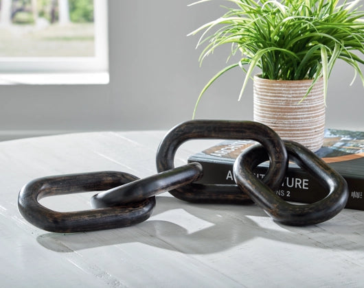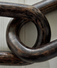 This sculpture sets the standard for casually cool art. Interlocking wood rings in a natural brown finish add an organic element to your decor. When displayed on a TV stand or fireplace mantel, or draped across a stack of books, it's such an impressive focal point.