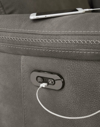 it's time to rethink the way you relax'and time to experience the joys of this power recliner. Taking a fashion-forward approach to the art of relaxation, this recliner will elevate your style and raise your standard of living. Its zero-gravity mechanism lifts the ottoman four inches higher than traditional recliners (23" off the floor) for better circulation. And talk about low maintenance. This designer recliner with one-touch power control and energy-efficient USB plug-in is wrapped in our newest Durapella upholstery. Water repellent, this fantastic fabric feels so good and is a breeze to clean.