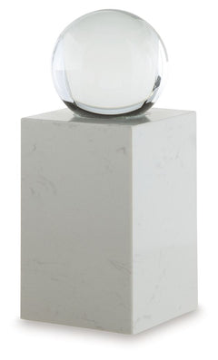 This exquisite sculpture effortlessly combines the purity of clear crystal with the timeless elegance of marble. Contrasting textures and materials create a captivating visual experience, making it a striking focal point in contemporary settings. It's the perfect piece for those who appreciate minimalist design and the beauty of natural elements.