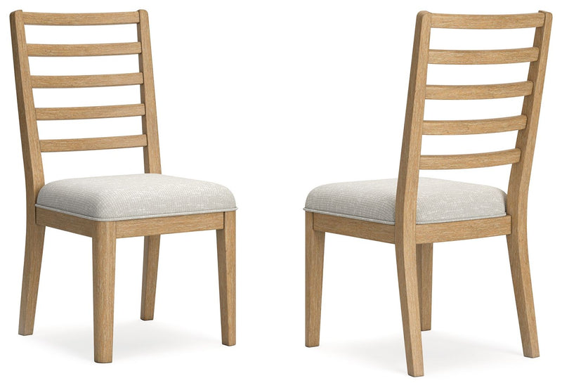 The Rencott dining side chair's classic yet contemporary good looks are hard to deny. Crafted with a modern ladderback design and a softly cushioned seat, it adds a comfortably cozy dimension to everyday seating or when guests gather. With a light oak finish and wire-brushed wood grain texture, this chair lends an organic appeal to your delicious dining space ... or wherever family and guests gather.