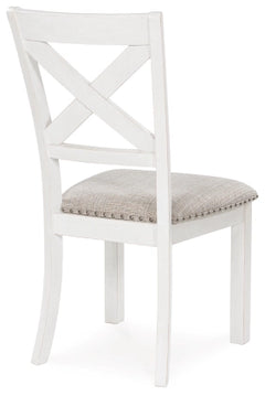 This dining chair is sure to impress come mealtime. With its antiqued white finish, classic country X-back and light gray upholstery with nailhead trim, modern farmhouse-style dining has never been so fashionable. All that's missing is you and your family.
