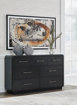 Inspired by art deco design, this softly shaped dresser makes a lasting impression in a simply stunning way. Its magnificent curved silhouette is enhanced by a rich layered black finish on the textured wood grain surface. This is the statement piece you’ve been dreaming of to elevate your contemporary inner sanctum.