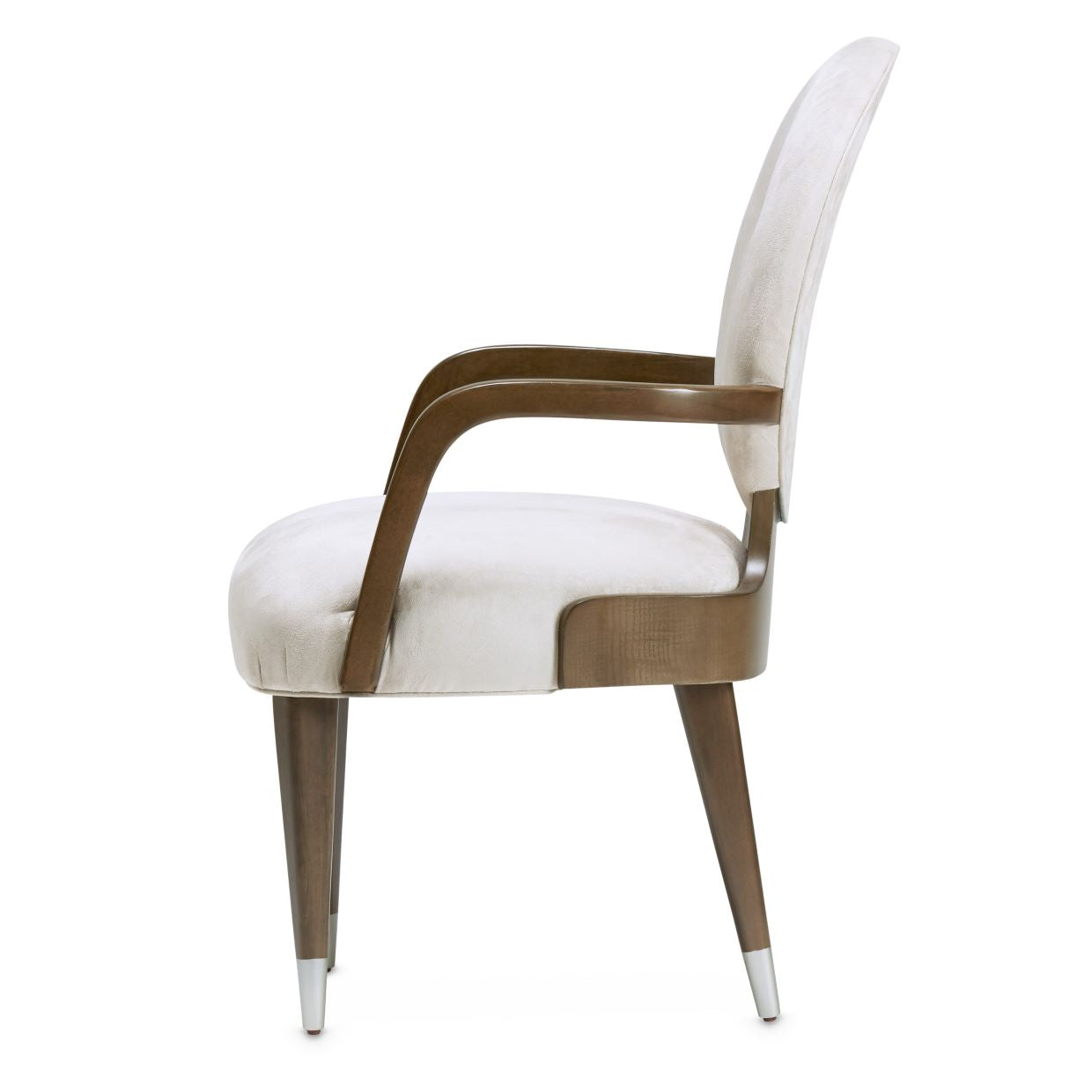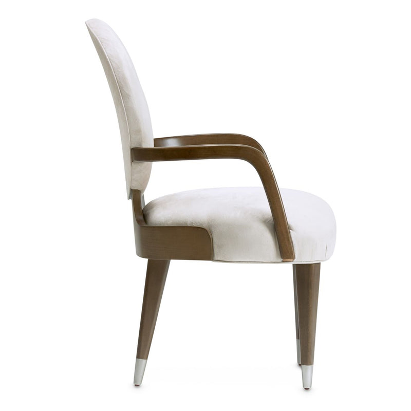 A sculptural interpretation of classic dining elegance, the Roxbury Park Dining Arm Chair brings timeless influence into a modern setting. Its softly contoured form, layered textures, and thoughtful detailing create a sense of quiet luxury that feels both intentional and inviting. Designed to complement the table while standing confidently on its own, it elevates every gathering with understated presence.